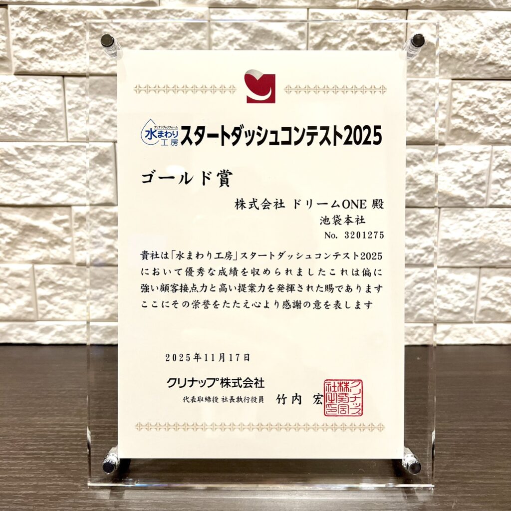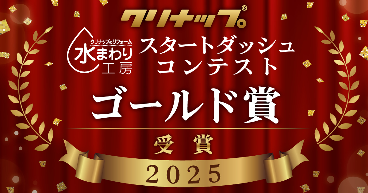 このたび、クリナップ株式会社様主催の「水まわり工房 スタートダッシュコンテスト2025」において、ゴールド賞 を受賞いたしました。