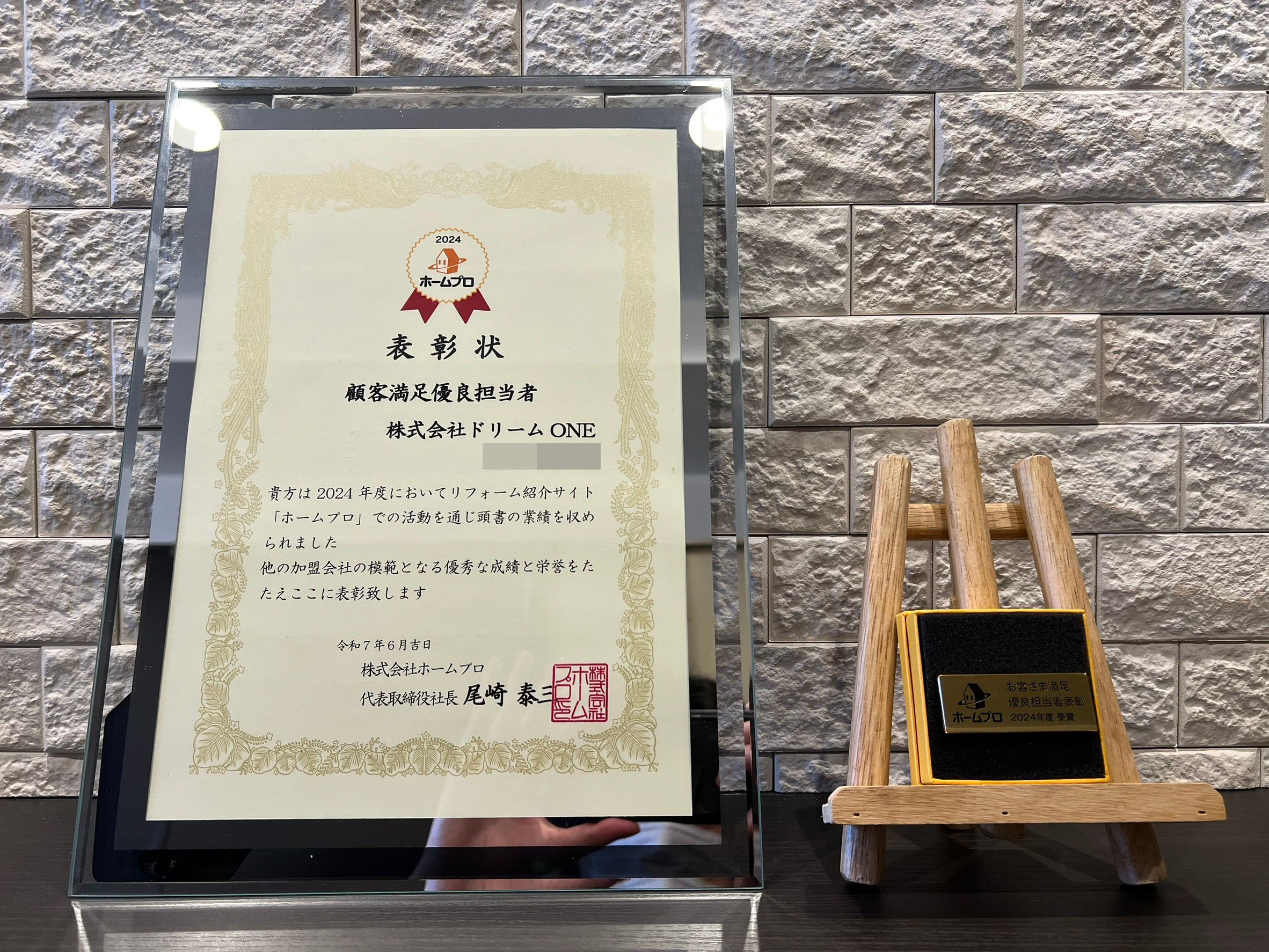 このたび当社は、株式会社ホームプロが毎年実施している「ホームプロ表彰」において、2024年度『顧客満足優良会社』を受賞いたしました。これは当社にとって通算5回目の受賞となり、あらためて多くのお客様に支えられていることを深く実感しております。