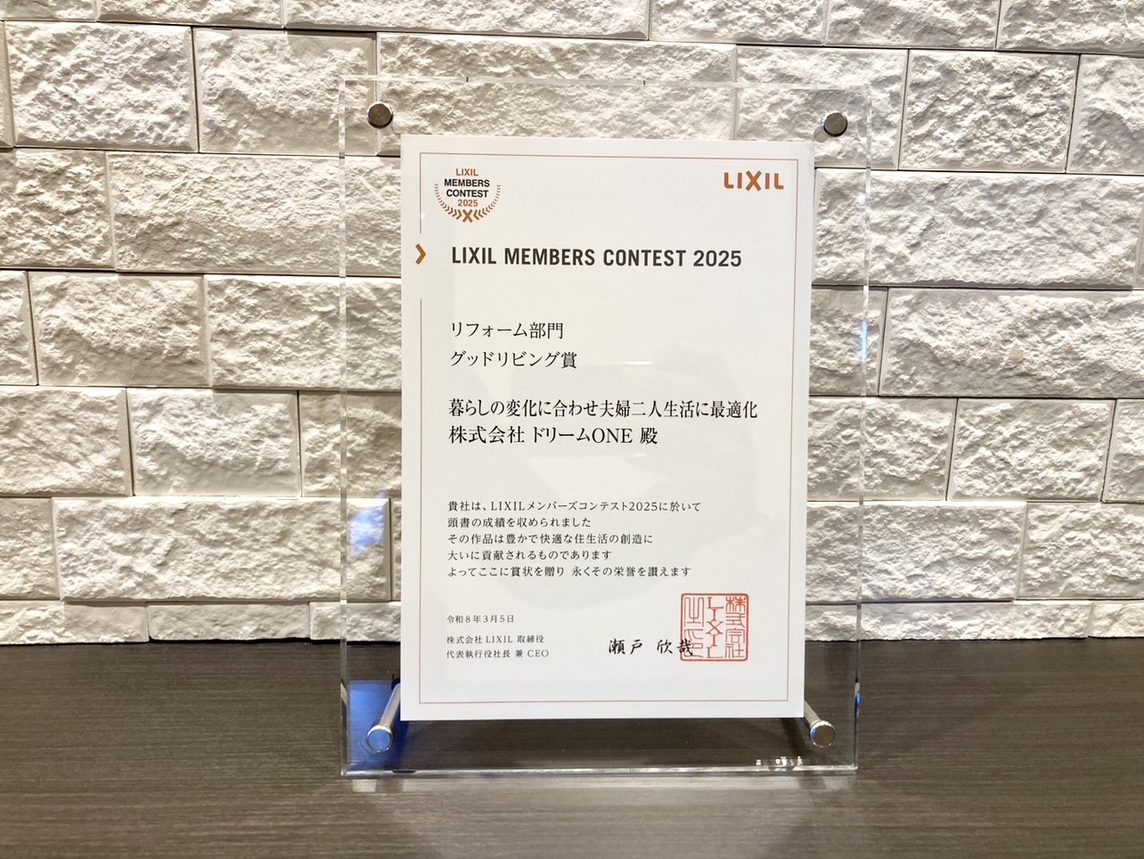 このたび株式会社ドリームONEは、LIXILメンバーズコンテスト2025 グッドリビング賞を受賞いたしました。