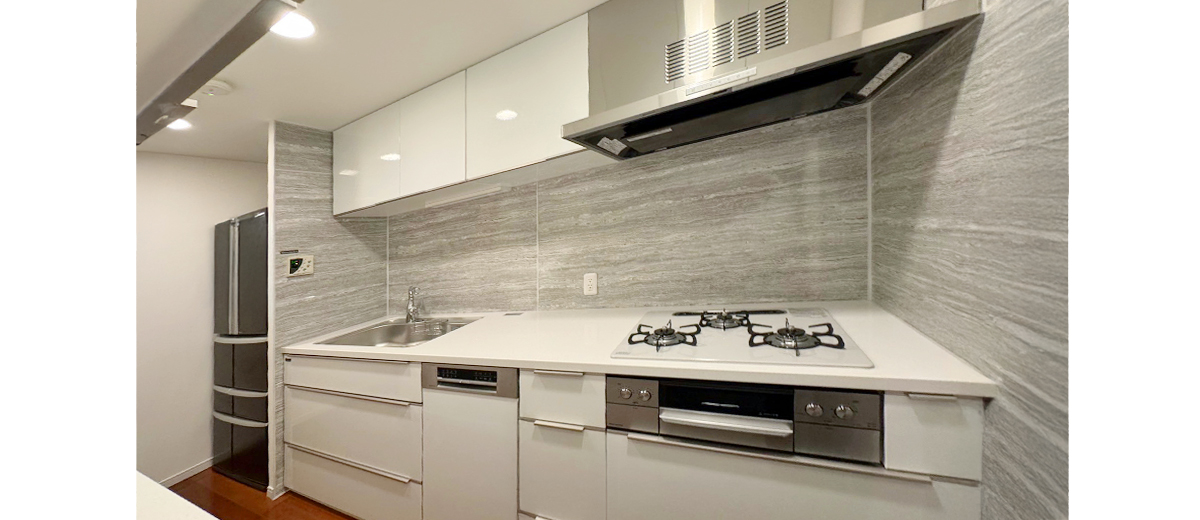 キッチン壁・天井張替|キッチンパネル張替|キッチン交換|カップボード交換|給排水・給湯管切回し工事
