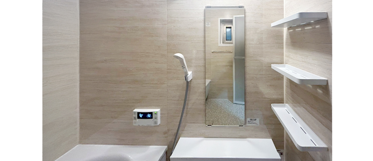 当社は同マンション内で複数の配管工事実績があり、建物特有の構造や天井配管ルートを把握しています。必要箇所のみ壁を丁寧に開口し、効率的に施工。配管更新に加え給湯器も新機種へ交換し、設備面の安心を強化しました。浴室はTOTO「WYシリーズ」を採用し、断熱浴槽やお手入れしやすい床・壁で快適性と清潔性を両立しています。