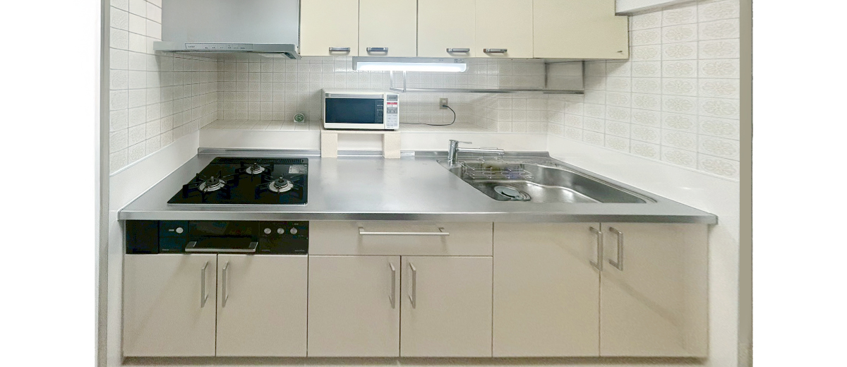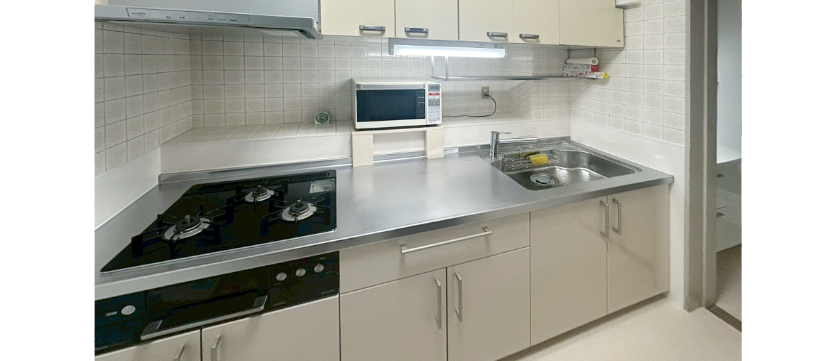 築40年以上のマンションにお住まいのお客様より、水回り設備の老朽化についてご相談をいただきました。以前にも当社で工事をさせていただいたご縁から、今回はリピートでキッチン・洗面化粧台・浴室の交換をご依頼くださいました。限られたご予算の中で、使える設備は活かしつつ必要な部分をしっかり見直し、長く快適に暮らせる住まいにしたいとのご要望でした。