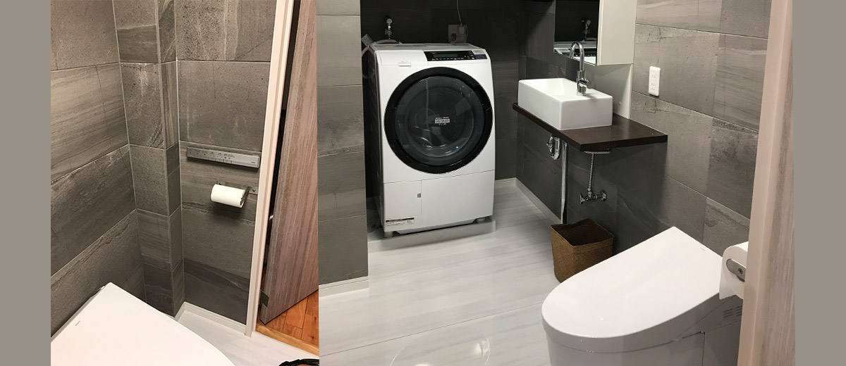 トイレの便器交換と内装(クロス、床)の張替え、洗濯パンの交換と位置変更をご検討されておりました。