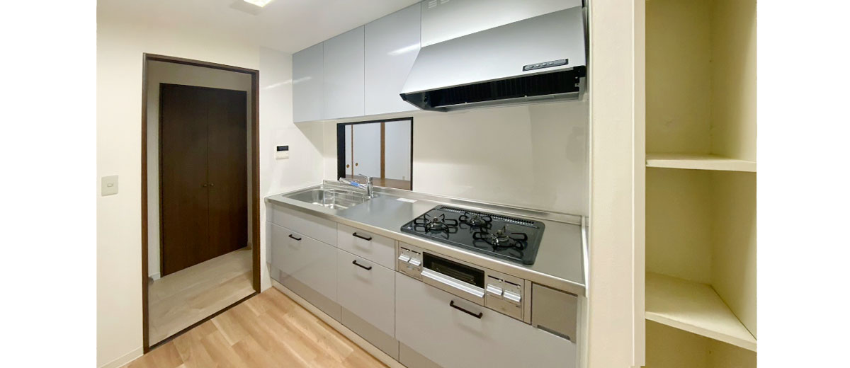 - 工事内容:全室床壁張替|キッチン交換|浴室交換|トイレ交換|洗面台交換